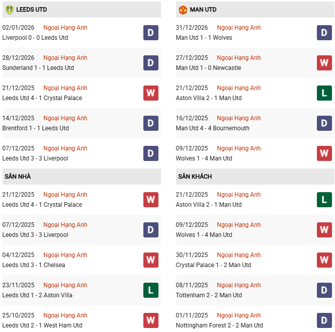Nhìn vào những gì xảy ra trong quá khứ thì có thể khẳng định Leeds không phải là đối thủ xứng tầm với MU. Tuy nhiên, hiện tại Leeds lại đang có phong độ khá cao. Cộng thêm lợi thế sân nhà, rất có thể họ chí ít cũng khiến cho chuỗi trận không thắng của MU chưa thể dừng lại.