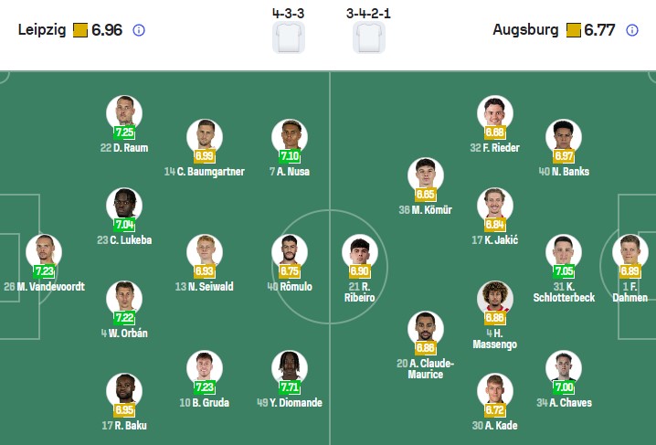 Leipzig ghi bàn hiệp 1: Leipzig đã ghi ít nhất 1 bàn trong hiệp 1 ở 6/8 trận gần nhất. Đặc biệt, Leipzig còn làm được điều đó trong 4/5 lần so tài gần đây với Augsburg trên mọi đấu trường.