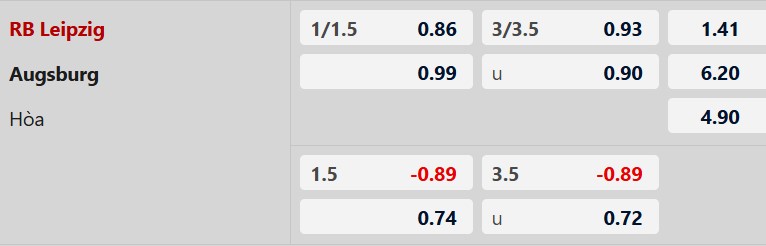 Chẵn bàn thắng: 7/9 trận so tài gần nhất giữa Leipzig vs Augsburg có tổng bàn thắng chia hết cho 2. Chưa hết, 9/10 trận sân nhà vừa xong của Leipzig lẫn 6/10 trận gần đây của Augsburg chứng kiến điều tương tự. Ngoài ra, 5/8 lần gần nhất khi Leipzig tiếp Augsburg trên sân nhà cũng có tổng bàn thắng chẵn.