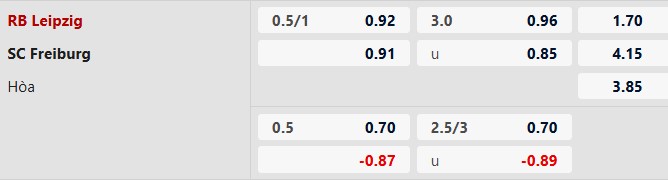 Leipzig được xếp cửa trên và chấp Freiburg 3/4 bàn. Với lợi thế sân nhà, vị trí cao hơn trên bảng xếp hạng cùng hiệu suất ghi bàn ấn tượng, Leipzig được đánh giá nhỉnh hơn. Dù Freiburg đang có phong độ tốt, nhưng việc phải làm khách trước một Leipzig chơi rất mạnh trên sân nhà là thử thách không nhỏ. Do đó, lựa chọn Leipzig -3/4 được xem là hợp lý.