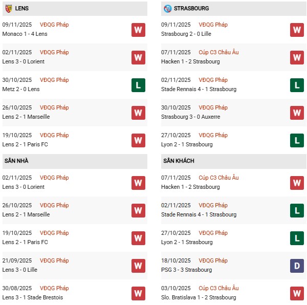 - Trên sân nhà, Lens thắng 5, thua 3 trước Strasbourg.