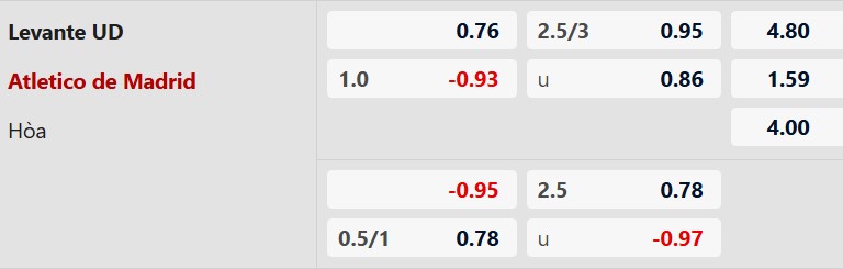 Tối đa 2 bàn thắng: 5/7 lần chạm trán giữa 2 đội gần đây chỉ có nhiều nhất 2 bàn thắng. Tình trạng tương tự xảy ra ở 8/10 trận gần đây của Levante và 3 trận sân khách gần nhất của Atletico.