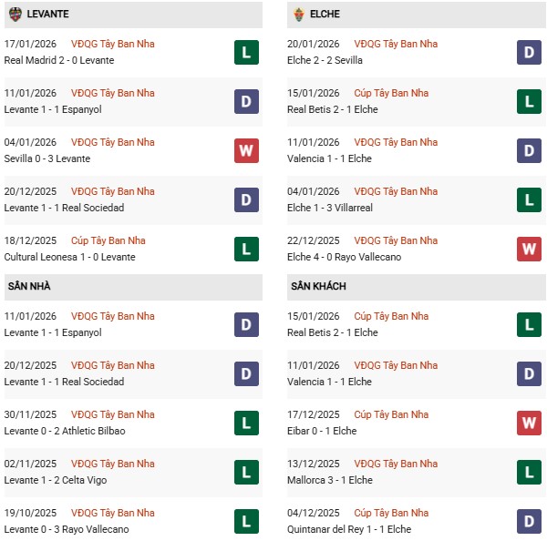 - Levante thắng 5, hòa 3, thua 2 trong 10 trận gặp Elche gần đây.