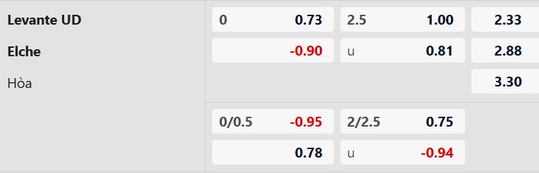Cả trận không quá 2 bàn: 7/8 lần gặp giữa 2 đội gần đây ở La Liga chỉ có nhiều nhất 2 bàn thắng. Tình trạng tương tự xảy ra ở 8/9 trận gần đây của Levante và 4/6 trận mới nhất của Elche.