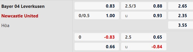 Từ 3 bàn trở lên: Cả 2 cuộc đối đầu giữa hai đội, 7/11 trận sân nhà vừa qua của Leverkusen và 7/8 trận gần đây của Newcastle đều có ít nhất 3 bàn cả trận. Hơn nữa, cả 6 chuyến làm khách vừa qua của Newcastle cũng đều chứng kiến tối thiểu 3 lần lưới rung cả trận.