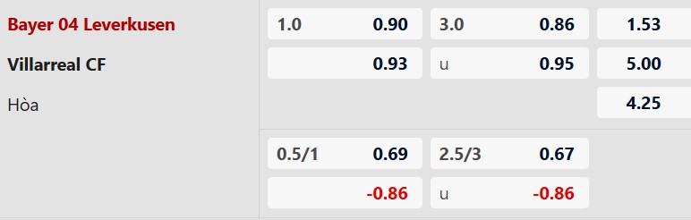 Hiệp 1 tối đa 1 bàn: Cả 3 cuộc đối đầu gần nhất, 2/3 trận gần đây của Leverkusen và 5/6 trận vừa qua của Villarreal đều có tối đa 1 bàn trong hiệp 1. Hơn nữa, 4/5 trận sân nhà gần nhất của Leverkusen và 5/7 chuyến xa nhà vừa qua của Villarreal đều có không quá 1 bàn trong hiệp đấu đầu tiên. Trận này khó có ngoại lệ.
