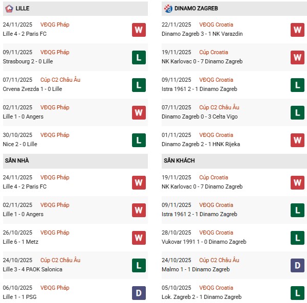Dự đoán Lille vs Dinamo Zagreb, 0h45 ngày 28/11, vòng Phân hạng Cúp C2 châu Âu, sân Pierre Mauroy. Mặc dù có phong độ khá tốt tại Europa League 2025/26, nhưng Dinamo Zagreb thực sự gặp khó khăn khi đối đầu với các đội trong năm giải đấu lớn.