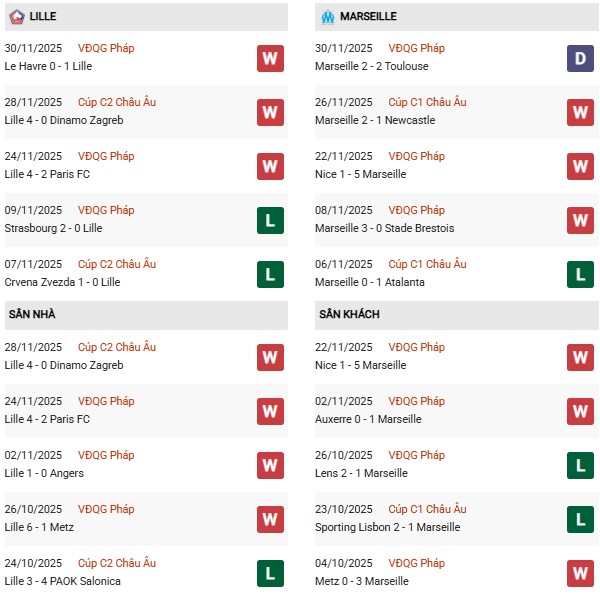 - Trên sân nhà, Lille thắng 5, thua 3 trước Marseille.