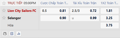 Lion City Sailors đang được đánh giá nhỉnh hơn trận này với mức kèo 1/2 bàn. 5 lần hành quân xa nhà gần nhất được thống kê về kèo châu Á, Selangor khiến giới đầu tư thất vọng khi thua kèo đến 4 trận. Trong khi đó, 3 trận gần đây của Lion City Sailors không thua kèo và thắng kèo đến 2 lần.