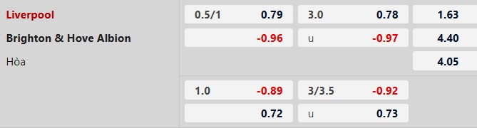 Chẵn bàn thắng: 3/4 trận gần nhất của Liverpool, 5/8 trận vừa qua của Brighton đều khép lại với tổng bàn thắng là chẵn. Ngoài ra, 2/3 trận sân nhà gần nhất của Liverpool và 10/11 chuyến làm khách gần đây của Brighton cũng đều có tổng bàn thắng chia hết cho 2. Trận này khó có ngoại lệ.