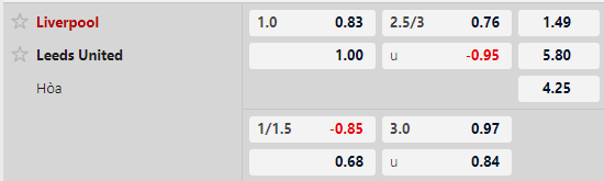 DỰ ĐOÁN: Liverpool 2-1 Leeds