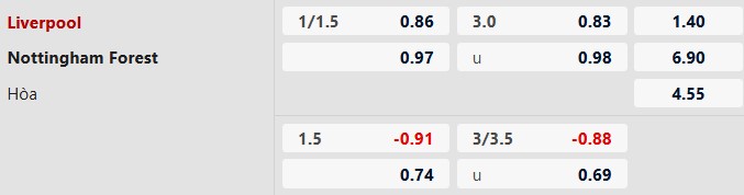 Hiệp 1 không quá 1 bàn: 6/7 cuộc đối đầu gần nhất giữa hai đội đều khép lại với không quá 1 bàn thắng trong hiệp 1. Thậm chí 5 trong số 7 trận đối đầu nói trên còn không có nổi bàn thắng nào trong 45 phút thi đấu đầu tiên. Kịch bản tương tự cũng xảy ra ở 8/12 trận gần đây của Liverpool và 4/6 trận gần đây của Nottingham. Ngoài ra, 4/5 trận sân nhà gần đây của Liverpool cũng khép lại với không quá 1 bàn trong hiệp 1.