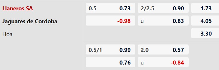 Mức chấp 1/2 bàn cho thấy Llaneros được đánh giá cao hơn nhờ lợi thế sân nhà. Tuy nhiên, phong độ của đội bóng này chưa thực sự thuyết phục khi họ hòa khá nhiều trong thời gian qua.