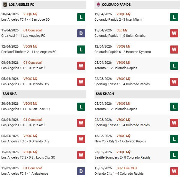 - Trên sân nhà, Los Angeles FC toàn thắng 9 trận trước Colorado Rapids.