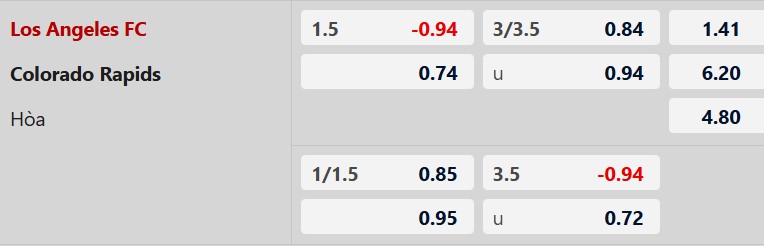 Mức chấp 1 1/2 bàn cho thấy niềm tin tuyệt đối vào sức mạnh của LAFC tại sào huyệt BMO. Dù vừa thua 2 trận liên tiếp, nhưng xét về đẳng cấp và dàn nhân sự, đội chủ nhà vẫn vượt trội hoàn toàn. Colorado Rapids thường chơi rất lúng túng khi phải chịu áp lực lớn trên sân khách, tiêu biểu là thất bại 1-3 trước New York City hay 2-3 trước Toronto. Nếu LAFC sớm tìm lại cảm hứng ghi bàn như trận thắng Orlando, một chiến thắng cách biệt cho chủ nhà là kịch bản rất dễ xảy ra.