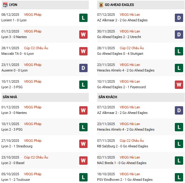 Tuy Lyon được dự đoán sẽ "thắng đẹp" nhưng không có nghĩa cuộc chơi sẽ vượt được ngưỡng 3 pha lập công. Mấu chốt nằm ở chỗ, Lyon mới nhận 2 bàn thua tại Europa League 2025/26 và có đến 6/9 trận sân nhà mùa này giữ sạch lưới song chẳng hôm nào ghi quá 3 bàn. Trong khi đó, GA Eagles tịt ngòi ở 4/7 trận đã qua tại "cúp C2 châu Âu" mùa này.