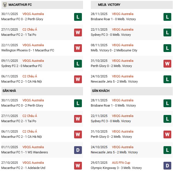 - Macarthur thắng 3, hòa 1, thua 6 trong 10 trận gặp Melbourne Victory gần đây.