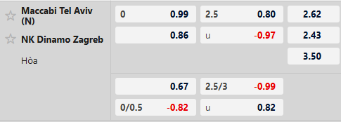 Nhận định Maccabi Tel Aviv vs Dinamo Zagreb, 02h00 ngày 3/10, vòng Phân hạng Cúp C2 châu Âu, sân Gradski. Với chênh lệch phong độ kèo rõ rệt, Dinamo Zagreb đang nắm ưu thế lớn và nhiều khả năng sẽ tiếp tục mang lại niềm vui cho giới đầu tư.