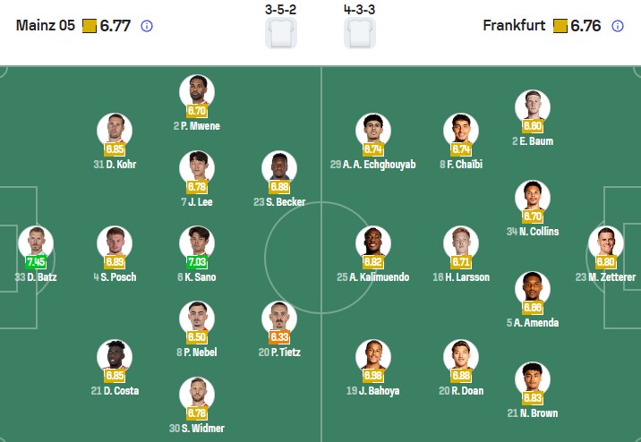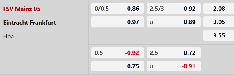 Frankfurt vẫn rất biết cách giành điểm từ những đội chủ nhà được đánh giá cao hơn họ nhưng đang sở hữu thành tích tổng thể không bằng giống như Mainz sắp tới. Ngoài ra từ năm 2021 tới giờ, đại diện bang Hesse chưa một lần lâm vào cảnh tay trắng sau 5 cuộc viếng thăm sào huyệt của Mainz. Do vậy, tin rằng Frankfurt sẽ có điểm trận này.