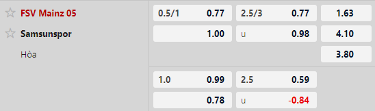 DỰ ĐOÁN: Mainz 1-1 Samsunspor