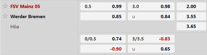 Thông tin kèo bóng đá Mainz vs Werder Bremen: