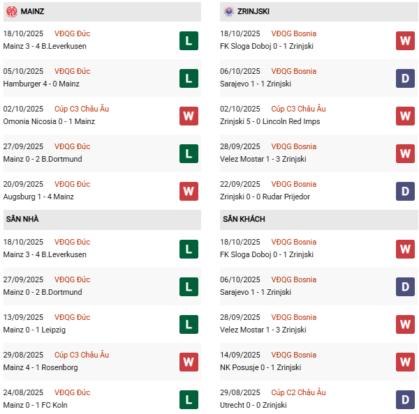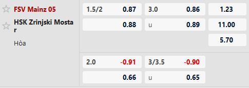 Song trong bối cảnh hiện tại, Mainz có lẽ khó thắng một cách dễ dàng, kể cả vẫn được xếp mức rất cao lên tới 1 3/4 bàn. Đương nhiên Zrinjski Mostar thua xa Mainz về mặt thực lực lẫn đẳng cấp nhưng đại diện Bosnia được tiếp thêm không ít tự tin sau ngày ra quân tưng bừng tại Conference League 2025/26: thắng 5 bàn không gỡ dù đối thủ chỉ là Lincoln Red Imps của Gibraltar quá yếu.