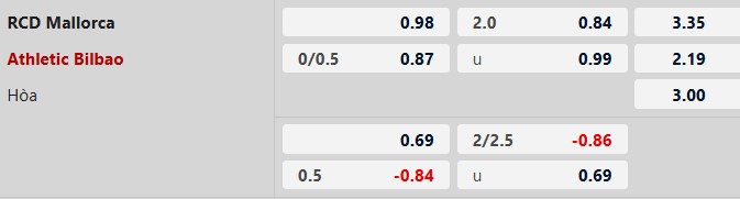 DỰ ĐOÁN: Mallorca 1-1 Athletic Bilbao