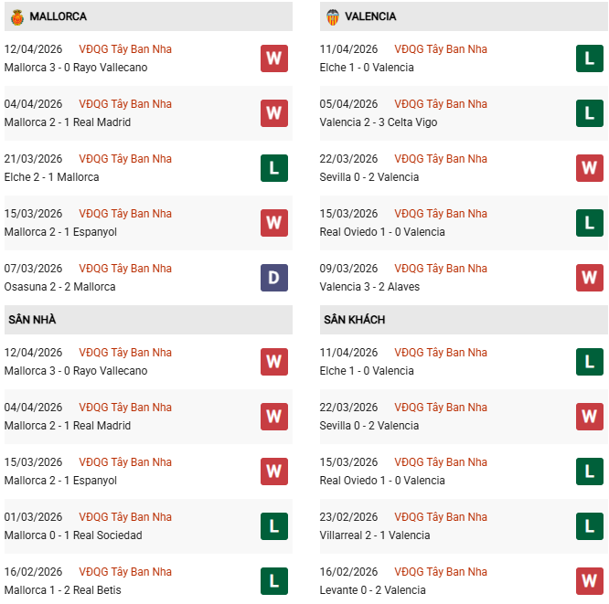 Ở vòng đấu gần nhất, Mallorca và Valencia đều có những kết quả khác nhau. Cụ thể, Mallorca giành chiến thắng 3-0 trước Vallecano còn Valencia thất thủ 0-1 trước Elche.