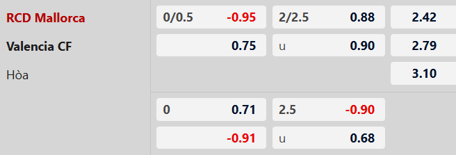 Phong độ của Mallorca vs Valencia không quá chênh lệch vào lúc này. Tuy vậy, Valencia không có thành tích tốt khi tới sân của Mallorca. Có khả năng, Valencia sẽ mất vui trước Mallorca.