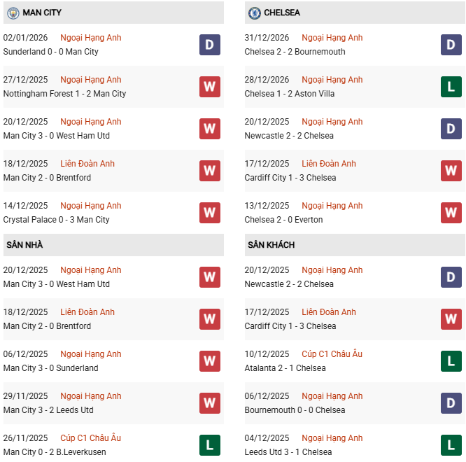 Trên sân nhà, Man City đã thắng tới 17 và chỉ thua có 2 trong 20 trận gần nhất trên mọi đấu trường. Do đó, Chelsea với tình thế như "rắn mất đầu" sau sự ra đi của HLV Enzo Maresca sẽ khó lòng tạo nên bất ngờ trên sân Man City.
