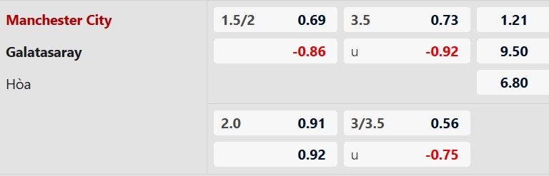 Chẵn bàn thắng: 7/8 trận gần nhất của Man City có tổng bàn thắng chia hết cho 2. Ngoài ra, 4/5 trận vừa xong của Galatasaray chứng kiến điều tương tự.