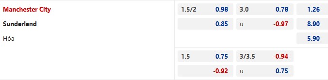 Lẻ bàn thắng: 6/7 lần gặp giữa 2 đội gần đây kết thúc với tổng số bàn thắng là số lẻ. 5/6 trận vừa qua của Man City và 6/9 trận sân khách vừa qua của Sunderland tương tự.