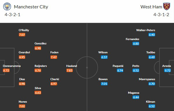 Erling Haaland ghi bàn: Số 9 của Man City đã ghi 9 bàn thắng tại Premier League vào lưới West Ham, anh chỉ ghi nhiều hơn vào lưới Wolves (10). Anh có thể là cầu thủ thứ chín ghi được 10+ bàn thắng vào lưới West Ham, và chỉ là người không phải người Anh thứ ba sau Mohamed Salah và Jimmy Floyd Hasselbaink làm được điều này. Ngoài ra, Haaland đang dẫn đầu danh sách Vua phá lưới Ngoại hạng Anh mùa này, với 17 bàn. Do đó, nhiều khả năng Haaland sẽ ghi bàn ở trận này.