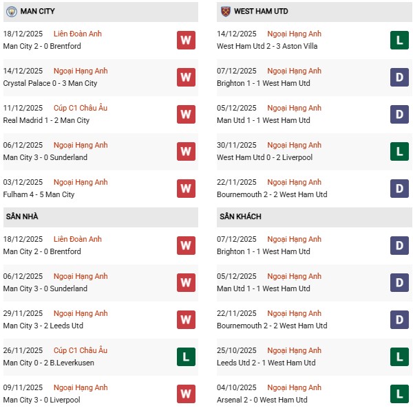 - Man City bất bại trong 19 trận gần nhất tại Ngoại hạng Anh gặp West Ham.
