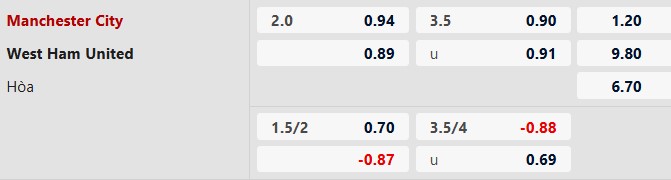 Lựa chọn tốt nhất: Man City -2 cả trận