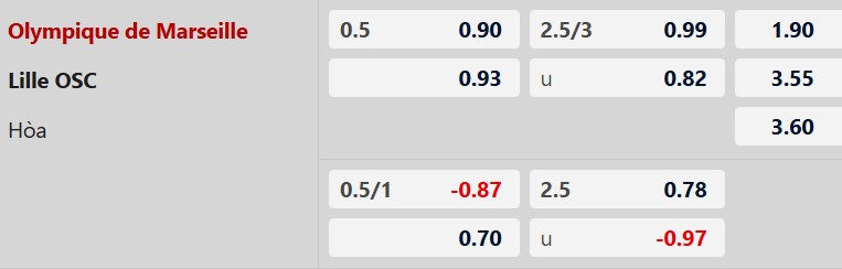 Hiệp 1 có bàn thắng: 6/7 trận vừa qua của Marseille có bàn thắng trong hiệp 1. Ngoài ra, 5/7 trận gần nhất của Lille chung kịch bản.