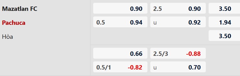 Thông tin tỷ lệ kèo Mazatlan vs Pachuca: