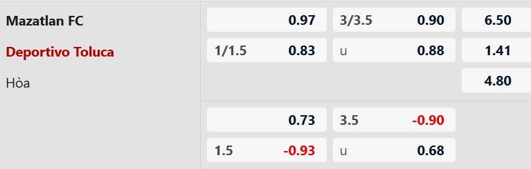 Mức chấp 1 1/4 bàn cho đánh giá rất cao khả năng giành chiến thắng cách biệt của đội khách. Dù Mazatlan đang rất cần điểm để thoát khỏi nhóm cuối bảng, nhưng hàng thủ thường xuyên mắc sai lầm của họ sẽ là "mồi ngon" cho các chân sút thượng hạng bên phía Toluca. Việc vừa trút cơn mưa bàn thắng vào lưới LA Galaxy sẽ là cú hích lớn để các học trò của ông Antonio Mohamed tìm lại cảm hứng ghi bàn tại giải quốc nội.