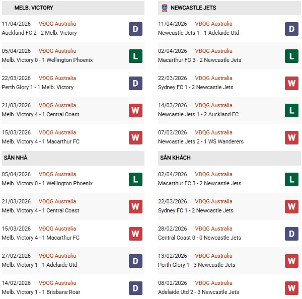 - Trên sân nhà, Melbourne thắng 5, thua 3 trước Newcastle Jets.