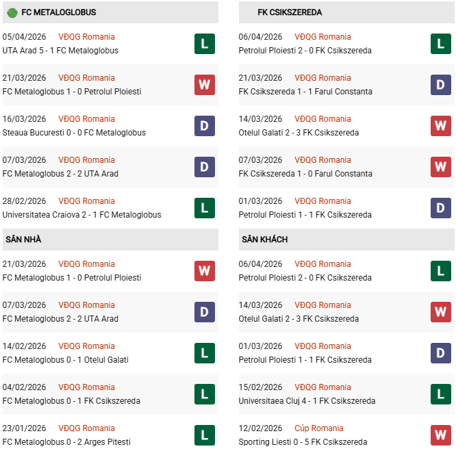 Trong khi đó, Csikszereda đang đứng ngay trên nhóm nguy hiểm nên vẫn còn nguyên động lực để giành điểm số tối đa. Đội khách sở hữu phong độ ổn hơn với 2 chiến thắng, 2 hòa và 1 thất bại ở 5 trận gần nhất. Đáng chú ý, khả năng chơi sân khách của Csikszereda không quá tệ khi họ bất bại 3/5 chuyến xa nhà vừa qua, trong đó từng đánh bại chính Metaloglobus 1-0 ở lần đối đầu gần nhất trên sân này hồi đầu tháng 2.