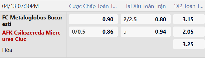 Csikszereda chấp 1/4 bàn là mức kèo hợp lý khi họ đang có động lực trụ hạng rõ ràng hơn hẳn đối thủ. Metaloglobus thua kèo 3/5 trận sân nhà gần đây, trong khi Csikszereda từng thắng ngay trên sân đối thủ ở lần gặp gần nhất. Với tinh thần quyết tâm cao hơn, đội khách là lựa chọn sáng giá.