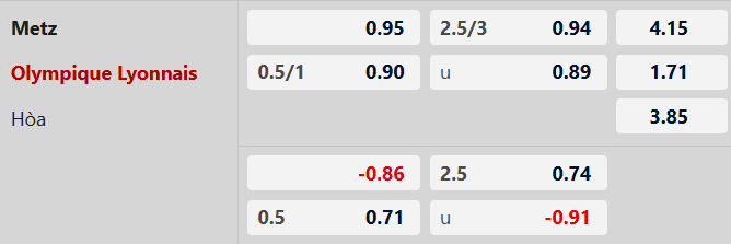 Từ 3 bàn trở lên: 4/5 cuộc đối đầu gần nhất, 7/9 trận gần đây của Metz và 4/5 trận vừa qua của Lyon đều có ít nhất 3 bàn cả trận. Ngoài ra, 9/11 cuộc chạm trán gần đây giữa hai đội tại Metz cũng có tối thiểu 3 lần lưới rung cả trận.