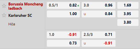4/5 trận gần nhất của M'gladbach đều về Tài chung cuộc, kịch bản tương tự cũng xảy ra ở 4/6 trận liền có sự xuất hiện của đội khách Karlsruher. Vậy nên với tỷ lệ tài xỉu 3 hòa, cơ hội để kèo đấu này về Tài sau 90 phút vẫn là khá rõ ràng.
