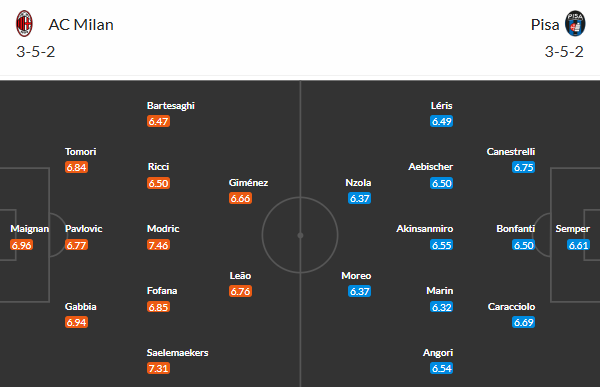 Pisa không phải là đối thủ xứng tầm của Milan. Họ đang trải qua mạch 9 trận toàn thua tại các giải đấu chính thức. Trong đó, họ chưa thắng được trận nào ở Serie A mùa giải 2025/26. Sau 7 vòng đấu, tân binh này thua 4, hòa 3, qua đó đang xếp ở vị trí bét bảng xếp hạng.