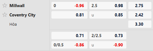 Millwall đang gặp khó khăn ở khâu ghi bàn khi chỉ ghi tối đa 1 bàn trong cả 5 trận gần đây. Tương tự, hàng công của Coventry City cũng không quá sắc bén với 3/5 trận gần nhất ghi không quá 1 bàn. Với hiệu suất làm bàn khiêm tốn từ cả hai đội, trận đấu này nhiều khả năng sẽ diễn ra chặt chẽ và khan hiếm bàn thắng. Giới đầu tư nên cân nhắc cửa Xỉu cho lựa chọn an toàn hơn.