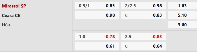 - Mirassol thắng 3, hòa 1, thua 1 trong 5 trận gặp Ceara gần đây.