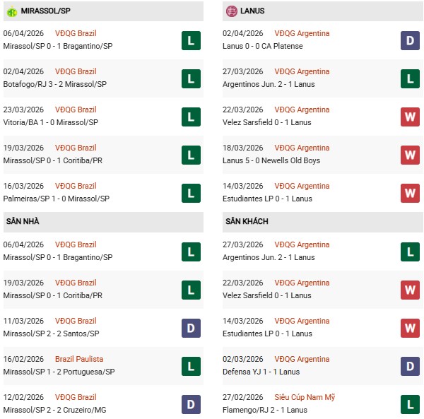 Ở phía đối diện, Lanus lại cho thấy tín hiệu tích cực hơn. Đại diện Argentina thắng 3, hòa 1 và chỉ thua 1 ở 5 trận gần nhất. Đáng chú ý, họ có chuỗi 3 chiến thắng liên tiếp trước Velez Sarsfield, Newells Old Boys và Estudiantes, trước khi bất ngờ gục ngã trước Argentinos Juniors. Với nền tảng lối chơi chắc chắn và giàu kinh nghiệm ở sân chơi Nam Mỹ, Lanus hoàn toàn có thể tạo ra khác biệt.