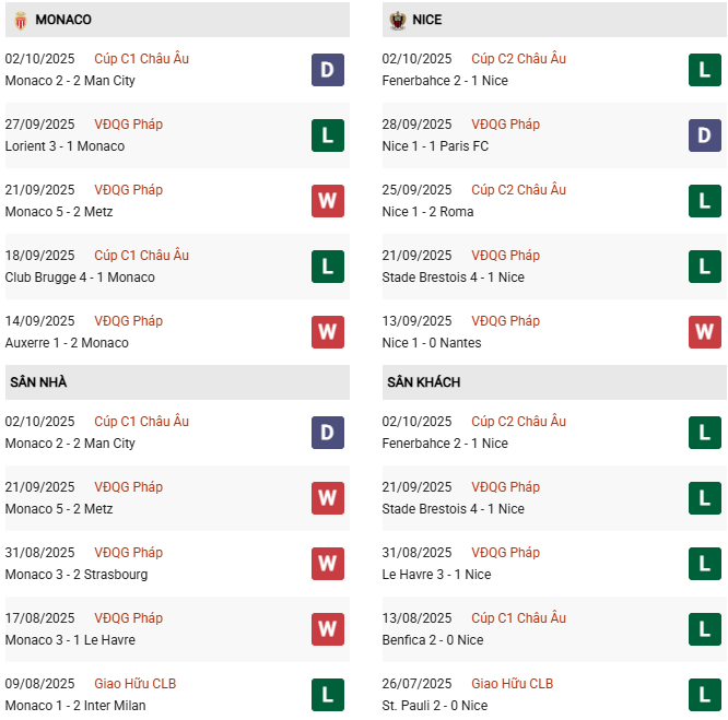 Cuối tuần trước, Monaco đã tụt xuống vị trí thứ tư trên BXH Ligue 1 2025/26 sau trận thua 3-1 trước Lorient, trong khi Nice chỉ có trận hòa 1-1 với Paris FC, qua đó đứng ở vị trí thứ 12. Tuy nhiên, Monaco đã tìm lại phần nào niềm tin bằng trận hòa mãn nhãn 2-2 trước Man City tại lượt trận thứ hai vòng phân hạng Champions League.