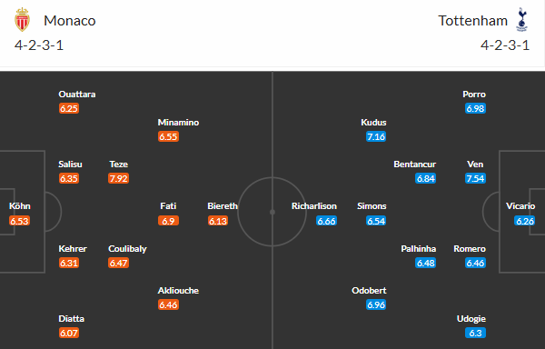 - Monaco thắng 3, hòa 1, thua 1 trong 5 trận gặp Tottenham gần đây.