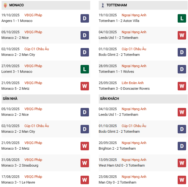 - Trên sân nhà, Monaco thắng 2, hòa 1 trước Tottenham.